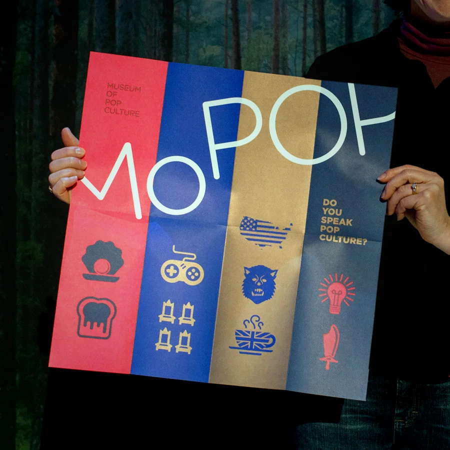 In fall of 2016, EMP Museum was renamed to the Museum of Pop Culture (MoPOP) to better align with its current curatorial and programming focus on all things pop culture. Prompted by the rename, the museum required a new logo and updated identity to represent the organization moving forward. Closely working with museum leadership and stakeholders as art director and designer for the rebranding effort, the entire institutional, promotional, and environmental visual program was produced within in a tight, two-month window and rolled out overnight in order to meet a targeted unveiling and public celebration event.